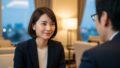 1. 序盤の信頼構築: 彼女が部屋に入ったら、まずは「出張で疲れているんだ。君みたいな綺麗な人が来てくれて本当に嬉しい」と、紳士的に、かつ心からの感謝を伝えてください。